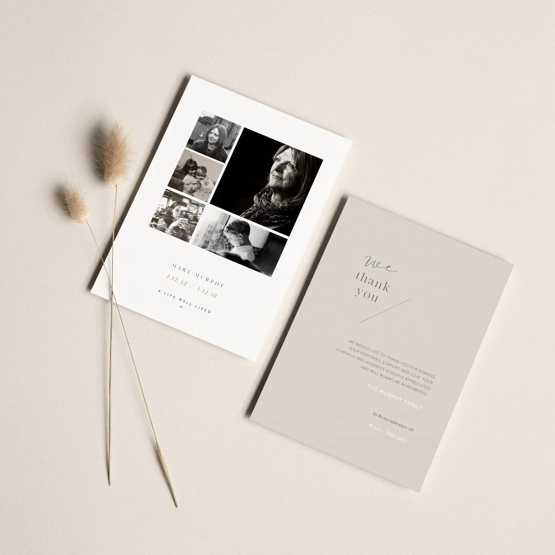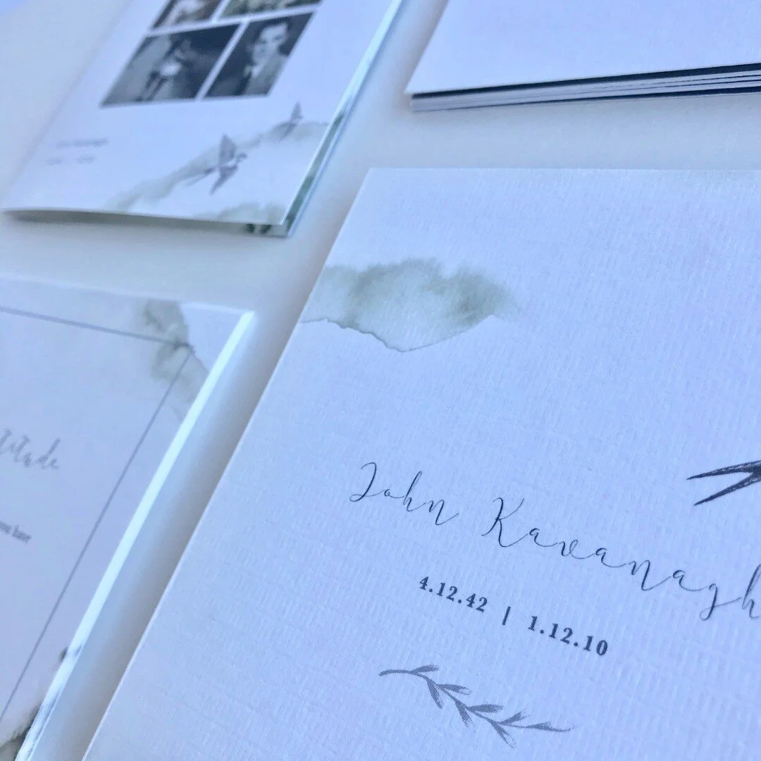 I create modern, personalised memorial cards in Ireland, thoughtfully designed with care and simplicity.