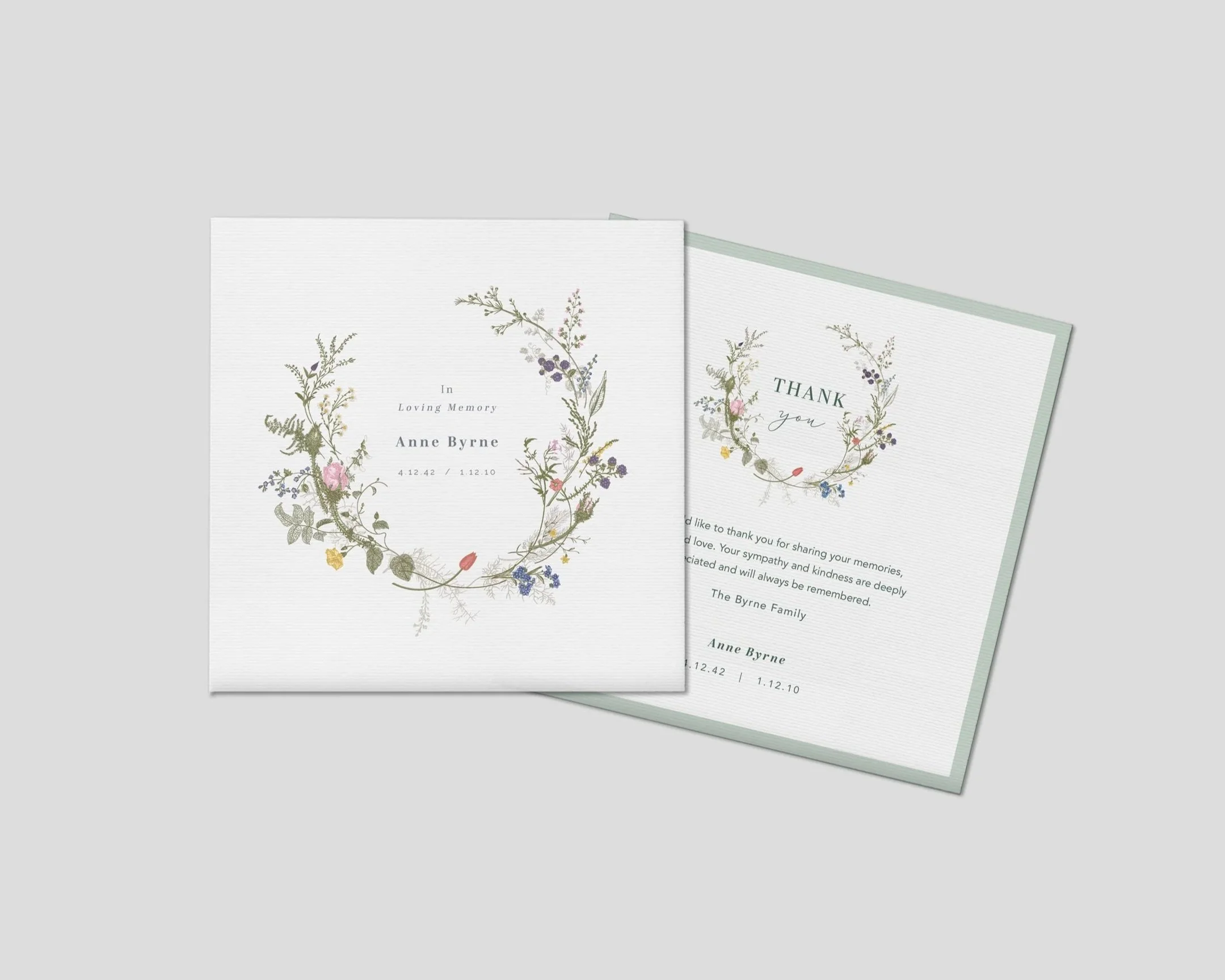 The Thank You card has been designed to slip inside the Memorial Card if you wish to send both cards together. Thank you cards may also be sent individually.